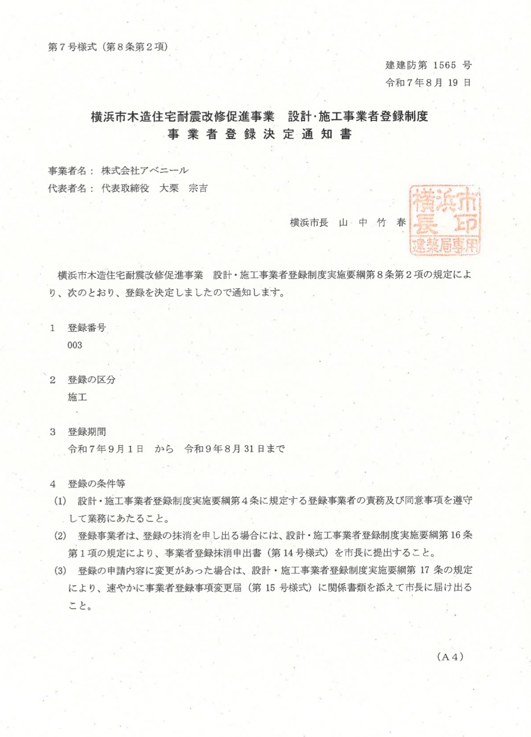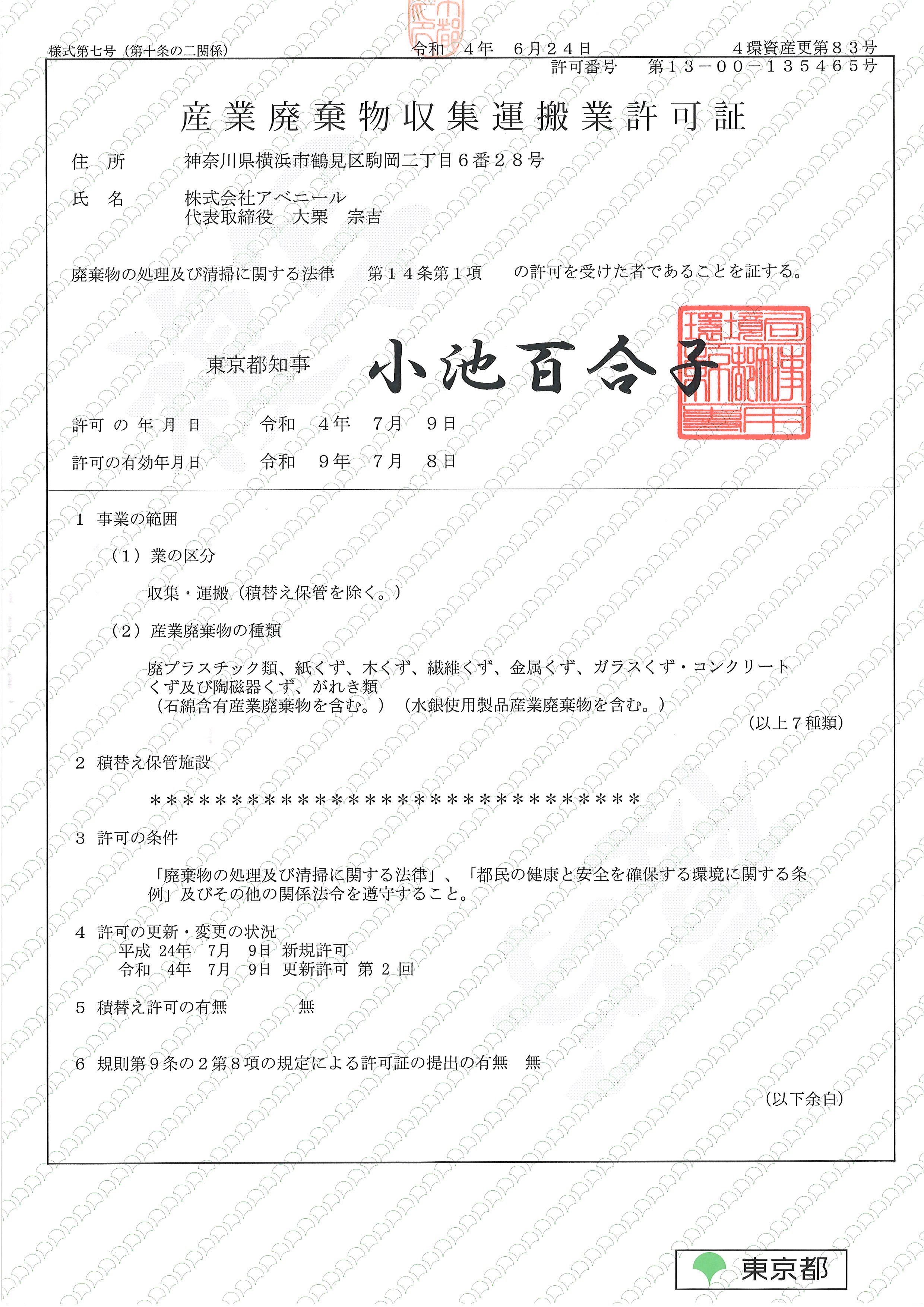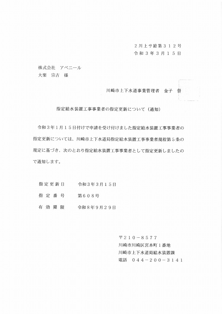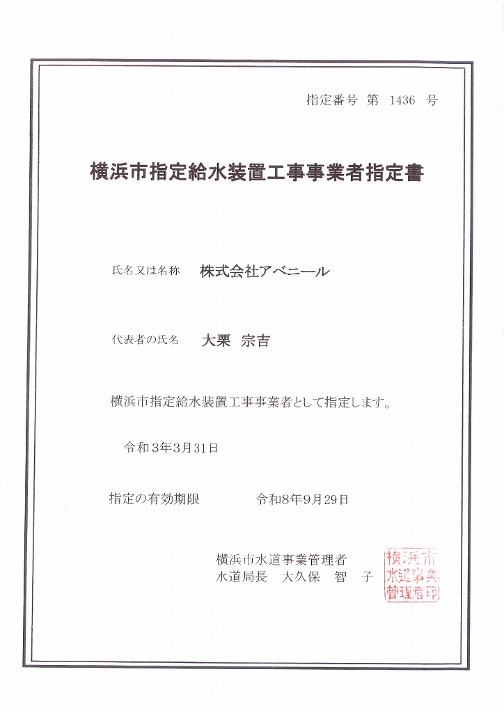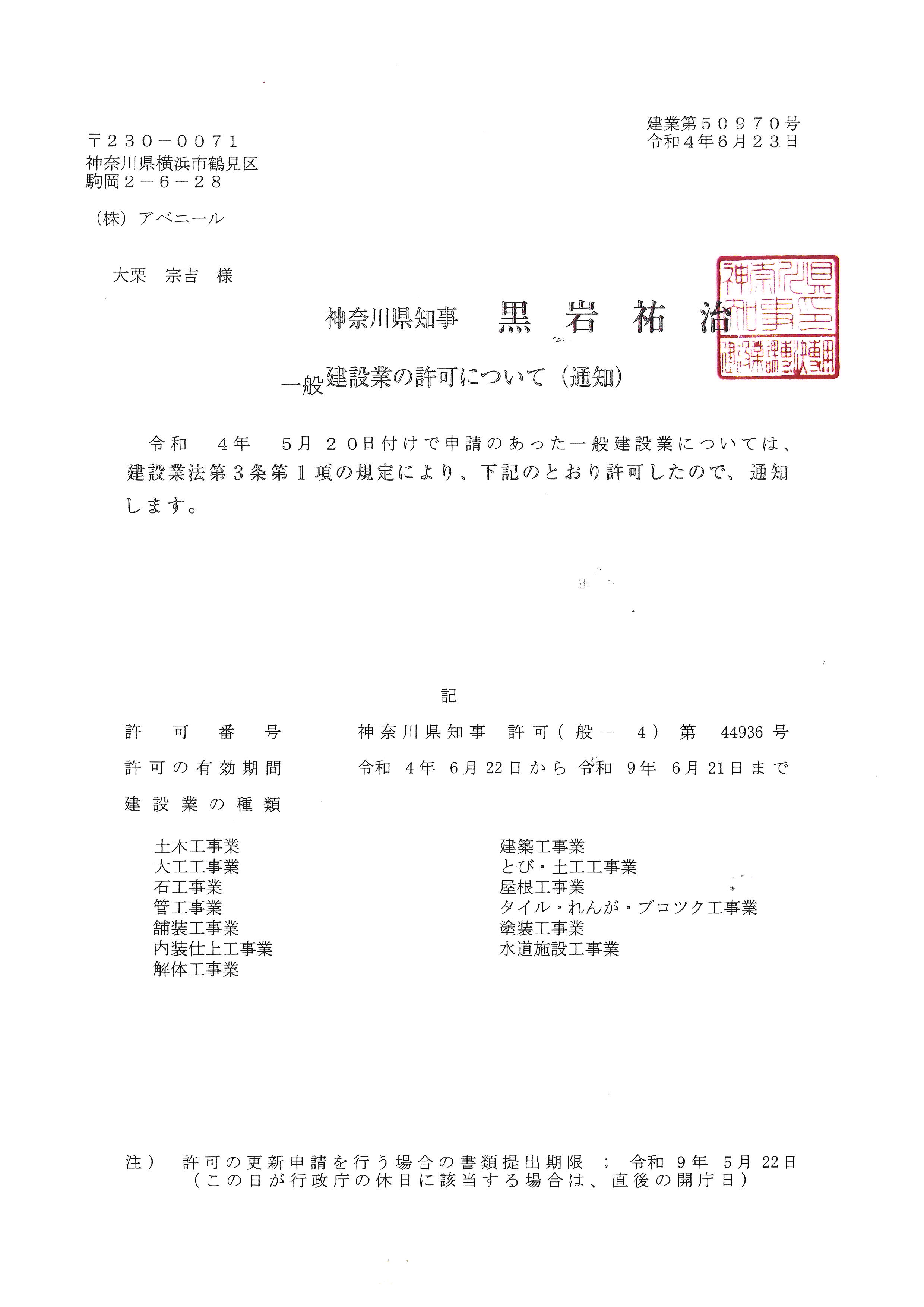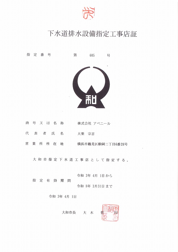 | | 営業エリア | 神奈川県・東京都内 | | 建設業許可登録の種類 | 横浜市 第1436号 神奈川県 第1537号 川崎市 第608号 東京都 第6227号 横浜市 第11332号 川崎市 第441号 大和市 第605号